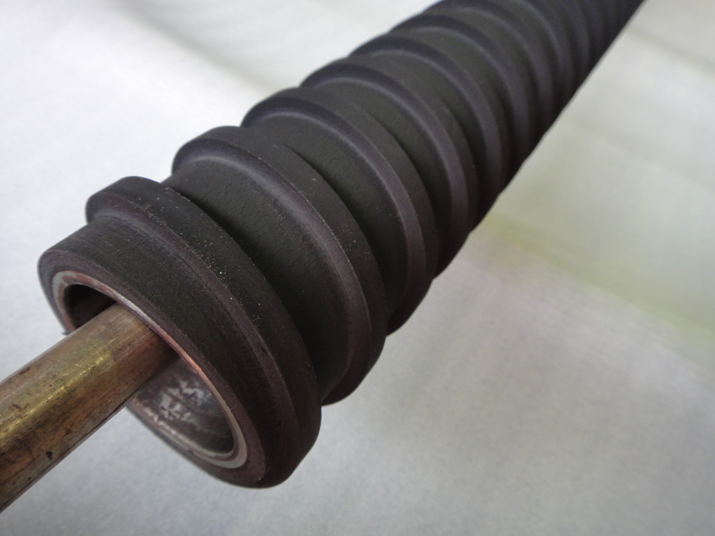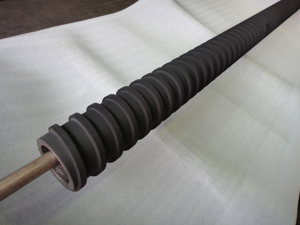 「スパイラル溝加工ゴムロール」です。